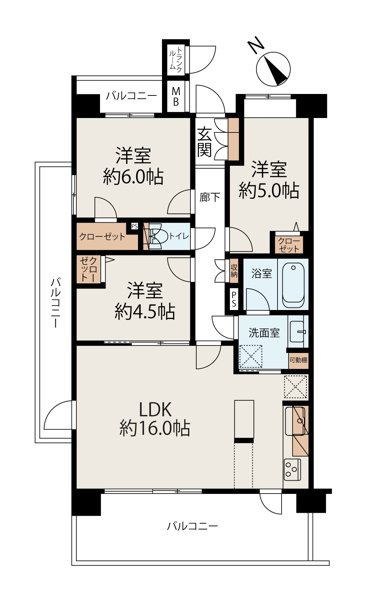 ■開放感のある3面バルコニー