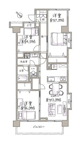 | 専有面積 | 73.60㎡(壁芯) | 間取り | 3LDK |