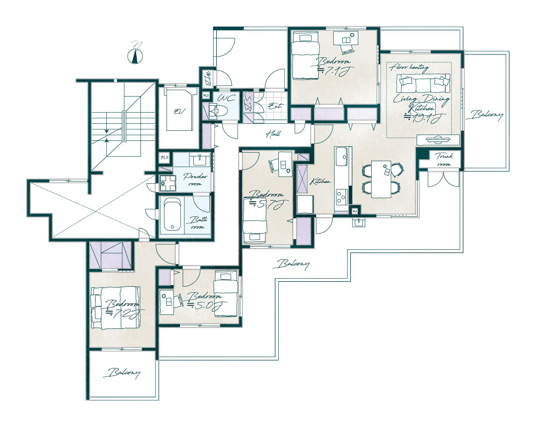 | 専有面積 | 105.33㎡(壁芯) | バルコニー面積 | 44.70㎡ |